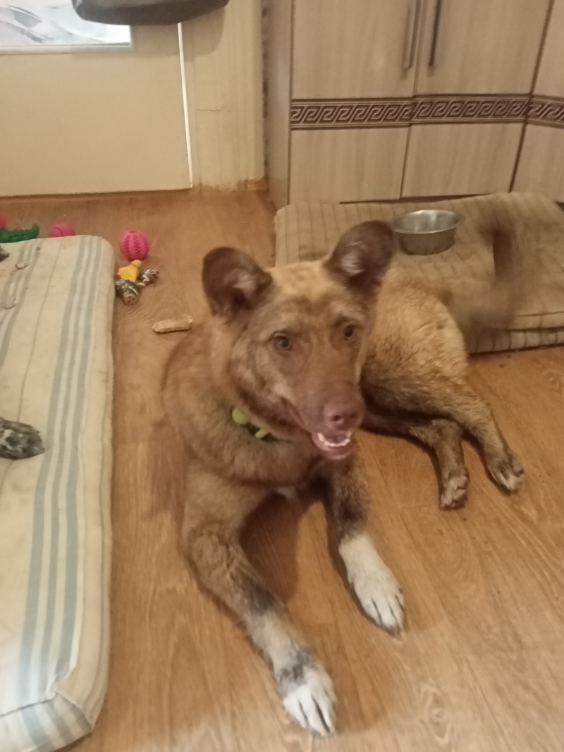 Дана девка то умная, мы научились ходить на шлейке, ездить на лифте, отлично понимает что такое дом, если говоришь пошли домой, то идет, в ЦЛС ходили пешком, обратно нас на машине забрали, просила, ходит прямо отлично, но вот энергии в ней немеренно, но в целом хорошая, ласковая девка, ей бы хозяина который бы занимался ей, а меня дома не бывает по 12 часов, да и когда я дома мне не до нее, кошки, лотки и т.д. Хозяева ее не ищут, кому предлагаю не хотят (((