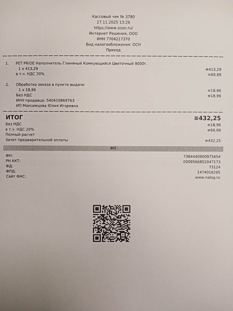 27.11.25 наполнитель - 432,25 руб. (фото 11);