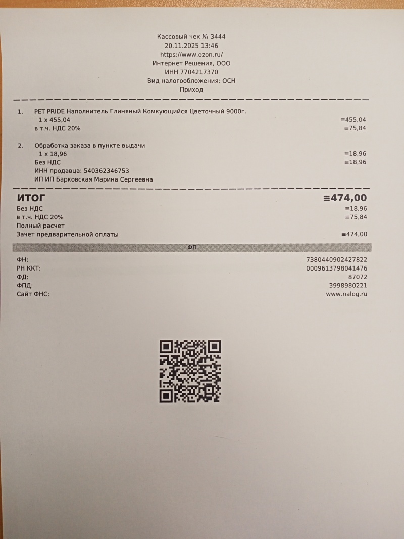 20.11.25 наполнитель - 474,00 руб. (фото 2);