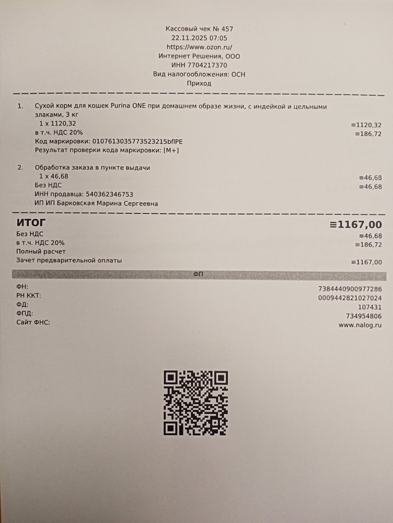 22.11.25 корм - 1167,00 руб. (фото 5);