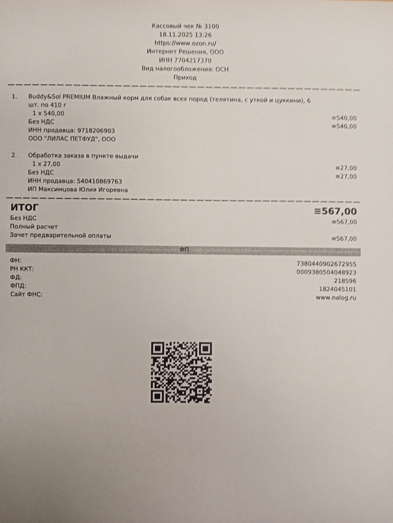 27.11.25 корм - 1167,00 руб. (фото 10);
