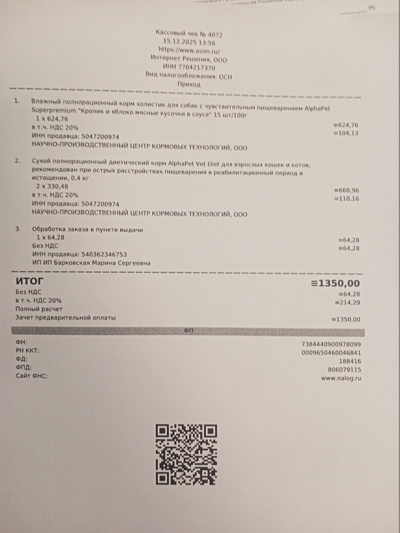 01.12.25 корм для Леси - 177,00 руб. (фото 16);