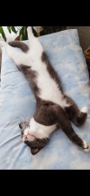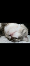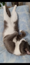 2. Кошечка Зайка, больна лейкозом, была забрана с улицы, серьёзные проблемы с поджелудочной железой, нуждается в лечебном корме Гастро пожизненно, больна лейкозом.