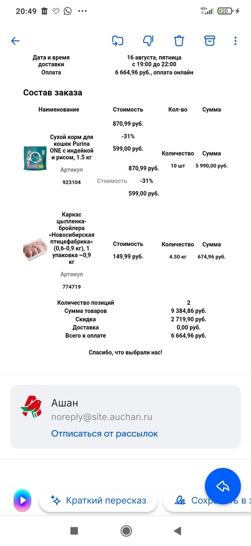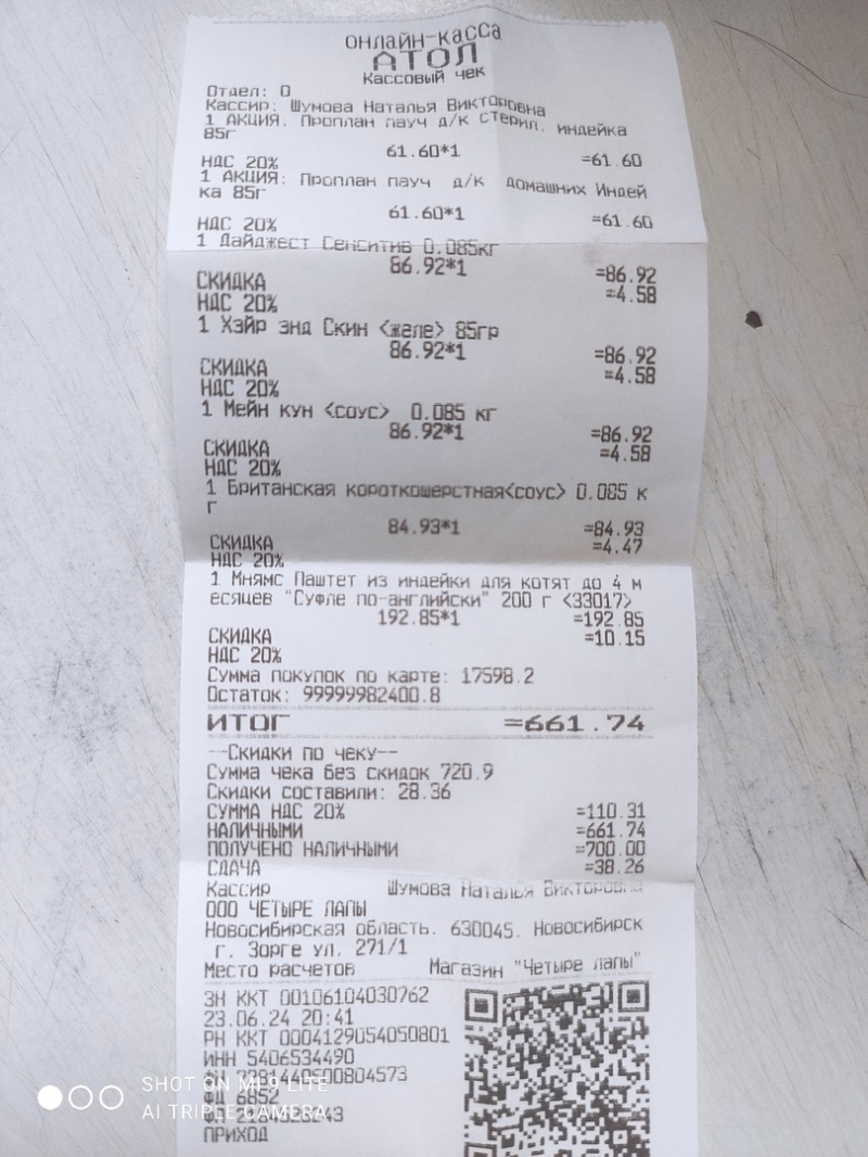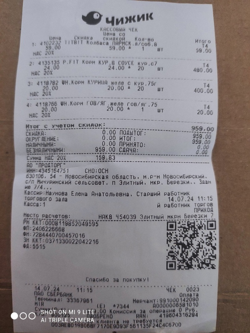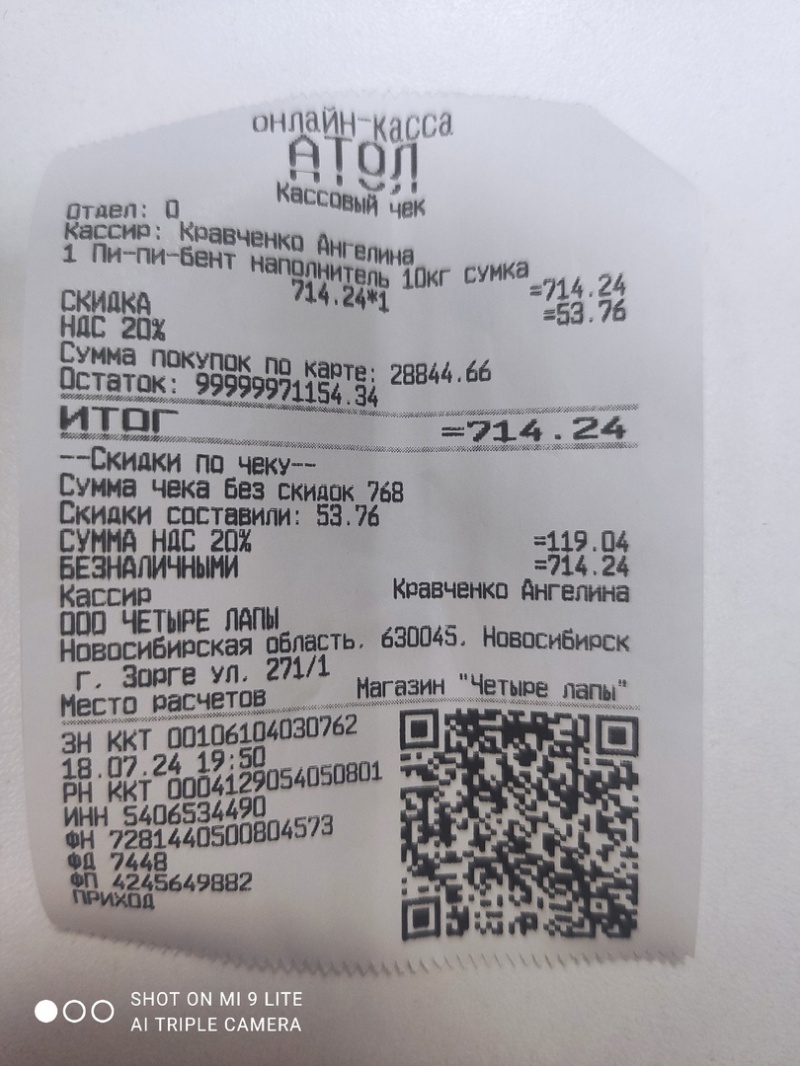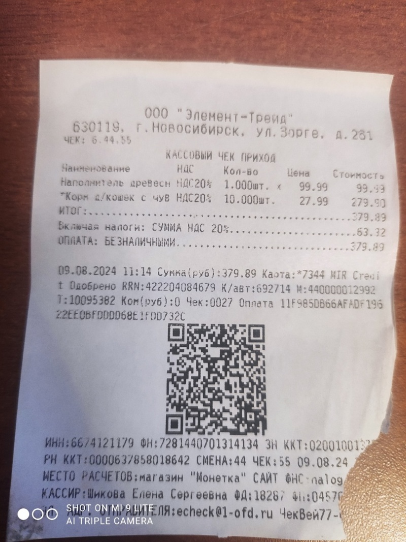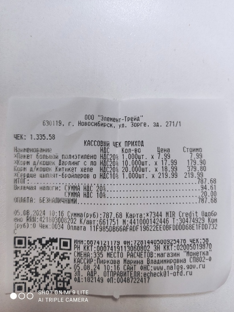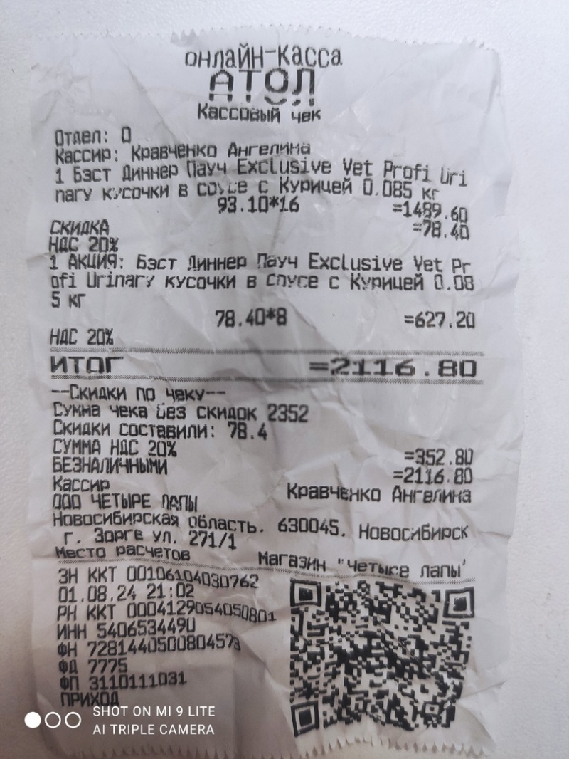 1. Корм для кошек Уринари, Диета сухой для кошечки Мими и Зоси, наполнитель для кошачьего туалета комкующийся, паучи для кошек на общую сумму: 2,962руб.