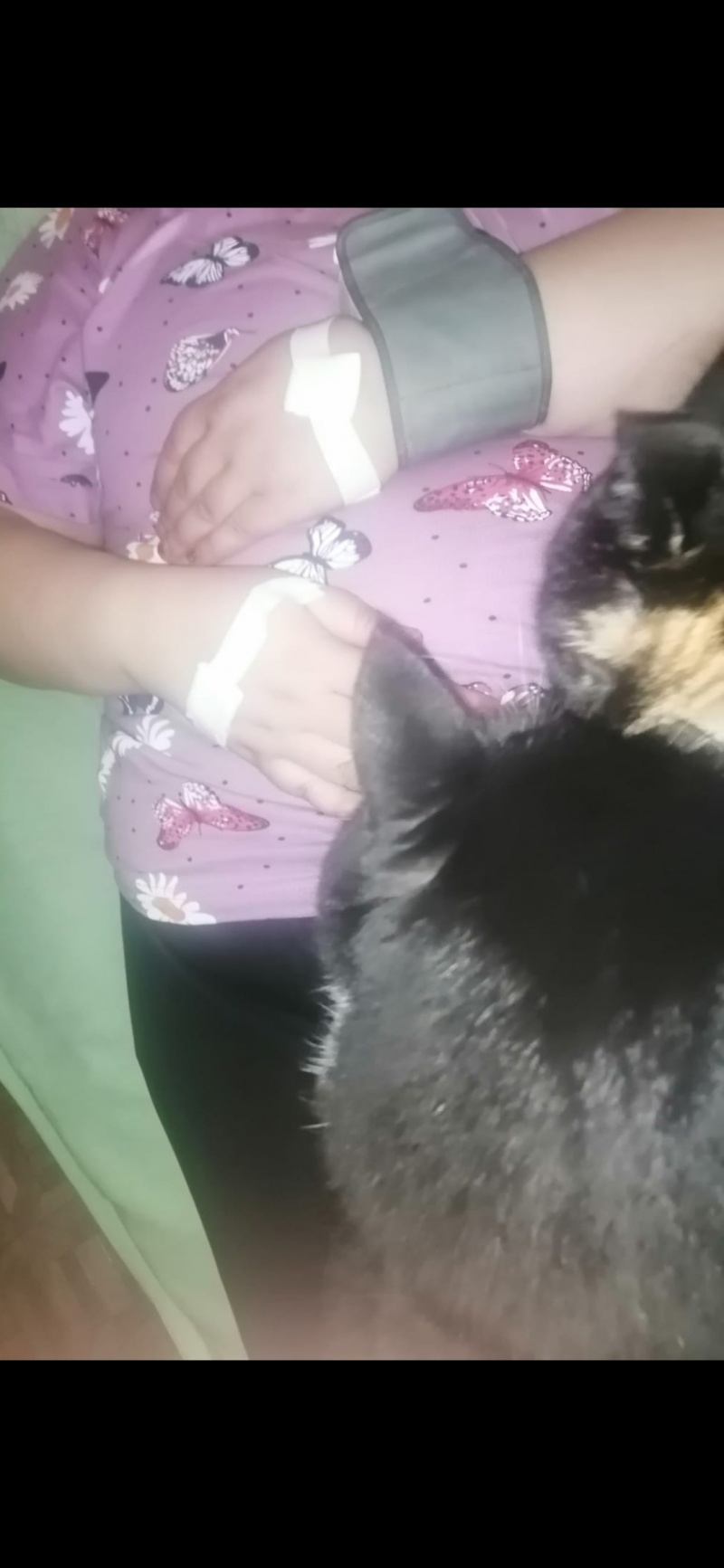Руки от внутривенных препаратов скорая наколола, а котики меня сразу же пришли пожалеть