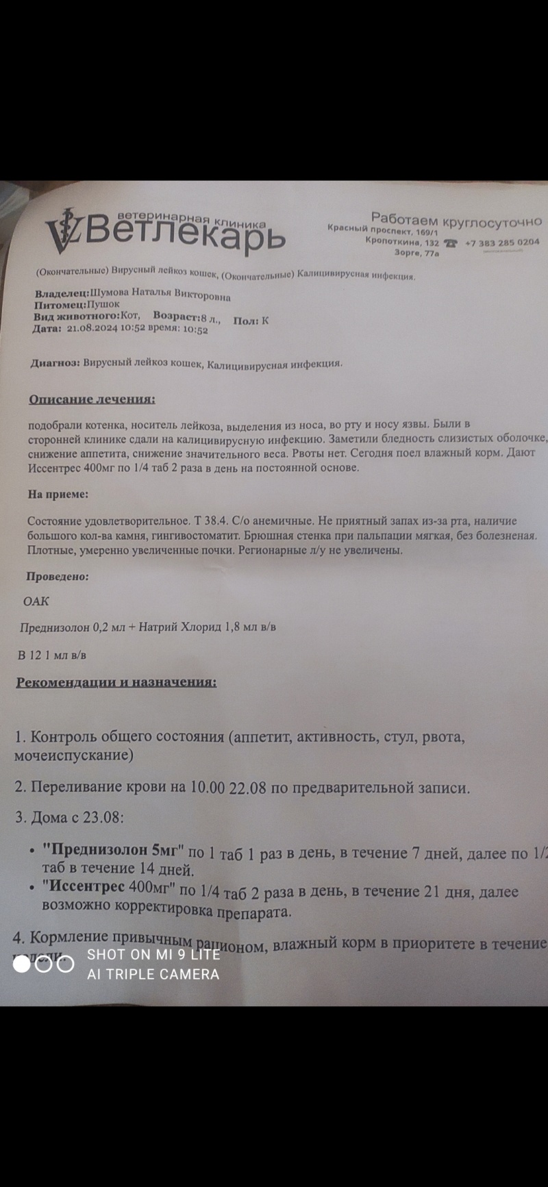 Оленька, нет, не попали мы на приём, я позвонила доктору. Он покушал, я не понесла его в клинику. То, что Пушок бледный, при лейкозе такое бывает. Врач сказала давать железо, следить за его питанием, немного подняли дозировку лекарств. Лейкоз, есть лейкоз...