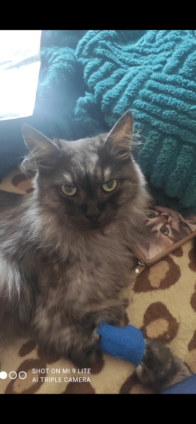 13. Кошечка Масяня, была забрана из подъезда с рваными ранами на голове, проблемы с лотком.