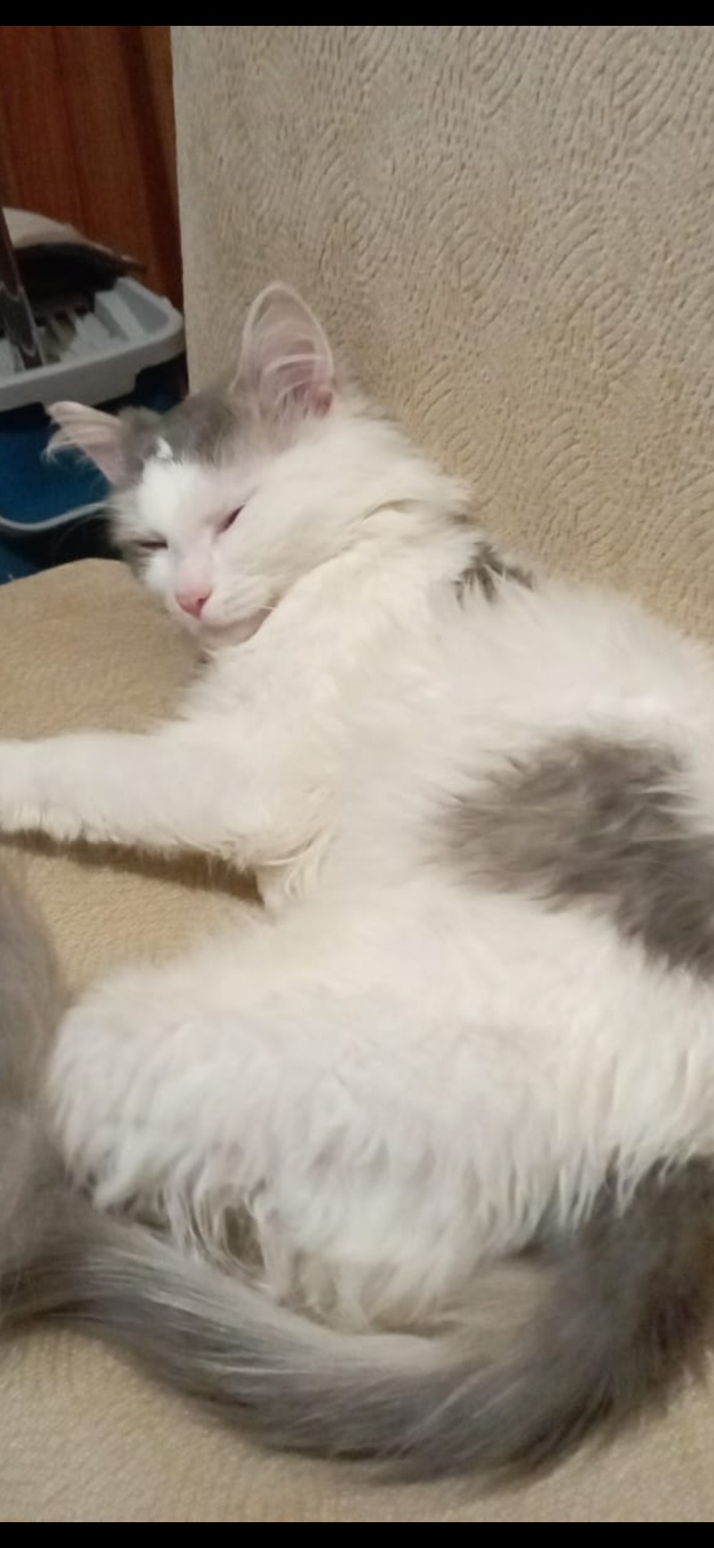 Пристроился беленький котик Лео.А я тебя Наташ с Лео поздравляю, это такая радость, когда они находят своих хозяев!