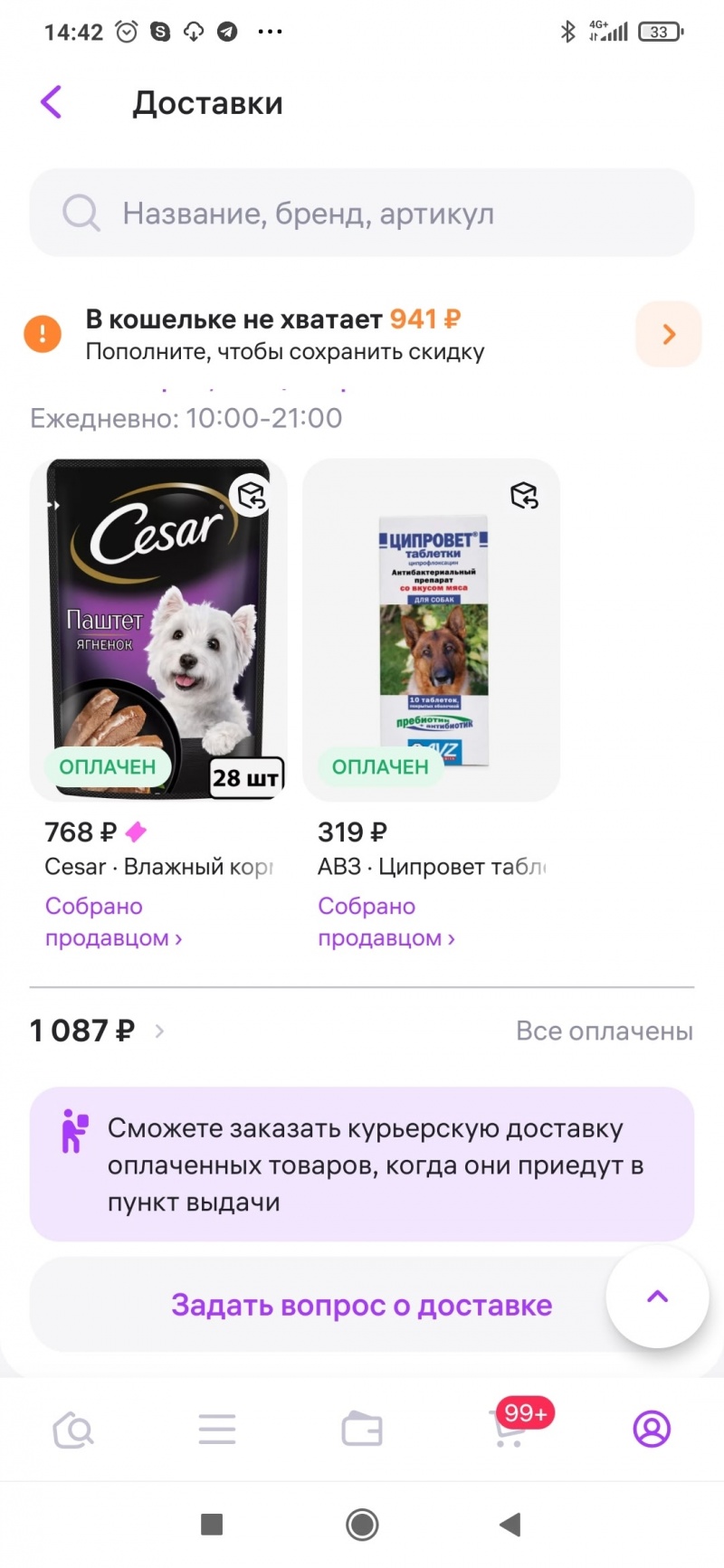 2. Корм для паучи паштет на общую сумму: 768руб. ( заказ на WB )