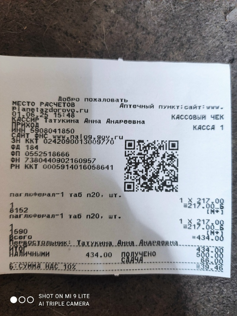 13. Паглюферал от эпилепсии для кошечки Маши 2шт. х 217руб. = 434руб.
