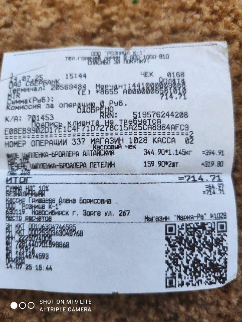 5. Филе цыплёнка + печень цыплёнка на общую сумму: 714руб.