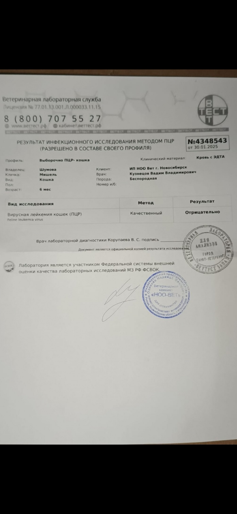Вообще лучше не сдавать сразу тест ПЦР ДНК, а в клетку на карантин на месяц помещать, т.к. есть инкубационный период у лейкоза, Коняев писал даже, что лучше и больше месяца ждать. Потому что, например, ты забрала с улицы кошачье, а его за день до этого укусил больной котик, ты сдашь экспресс или даже ПЦР ДНК, он будет отрицательный, а лейкоз через месяц вылезет, а ты уже обрадуешься и выпустишь в общий прайд.