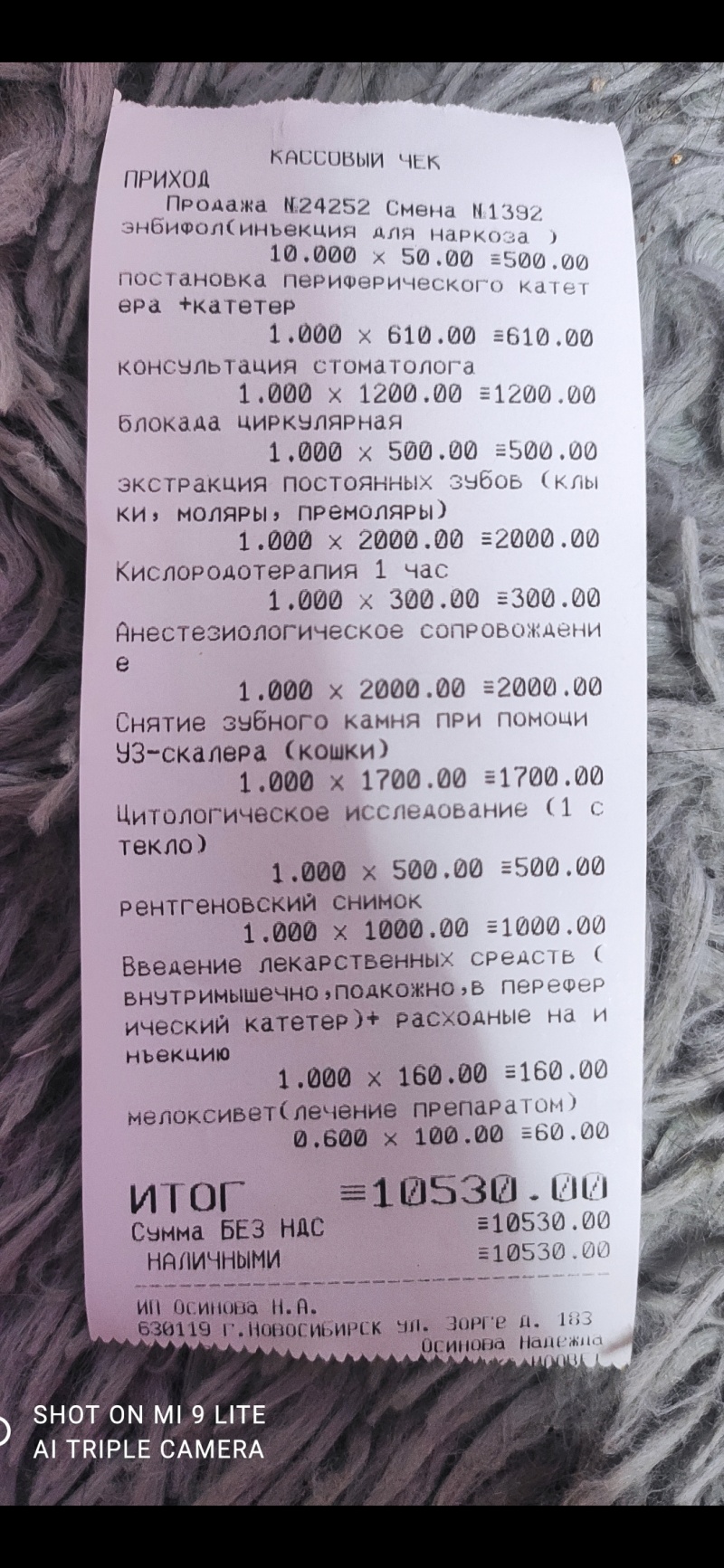 Опухоль пока решили не удалять, будут наблюдать, назначили уколы, а вот зуб больной удалили. Но и сделали чистку зубов.