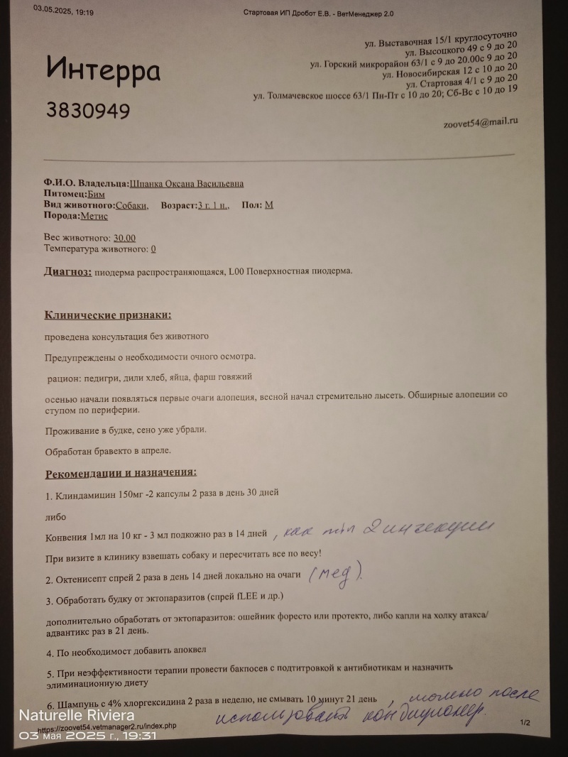 12.04.2025 - Бравекто 20-40кг Биму 1табл.