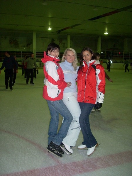 И падала пару раз - в первый пацанчик лет 10 под ноги подлез - там эти мальцы носятся, как ненормальные - и я через него навернулась...Второй раз - пересеклись траектории движения с молодым человеком, я легонько так его за талию обняла - думала, удастся сохранить равновесие, а он и сам не удержался...И бахнулись оба на лед. Причем мне так смешно стало, когда тут же с бешено ревнивыми глазами его девушка подлетела...