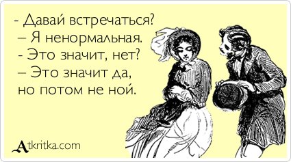 спасибо, повеселилиПравильно, когда есть интерес, то хоть 100 раз поговоришь, пока не убедишь, что бесполезно. Хотя, может быть она просто поняла, что муж для нее будет на самом деле лучше. А с вами, с вашей вспыльчивостью, она просто не сможет долго рядом находиться.Ну возможно, да, в этом есть правда, но если есть любовь люди разговаривают, пытаются обговорить происходящее, а не игнорируют. Да и взорвался, то по сути не от ее отношения, ей об этом сказал и объяснил, а от своей сложившейся жизненной ситуации, ну накипело, у нас это всех бывает.