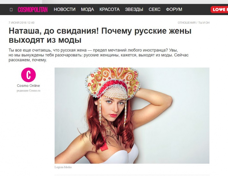 отличная формулировка! хотя мне в общем и целом нравится то, что они пишут. Никто из них не пытается забрать у женщин право на карьерную самореализацию, они лишь говорят о том, что не пашите девочки, а занимайтесь тем, что любите. В идеале оно именно то, что нужно. Ну и да, в основном они защищают классический институт брака. Что тоже неплохо в общем.Ответ на сообщение Re: Наташа, давай, досвидания. пользователя Ришелье_Арман