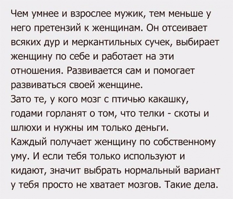 В ответ на: Но если женщина хочет чтоб о ее чувства "заботились, учитывали и уважали" - это нужно совершенно точно, равно как и с мужской стороны.