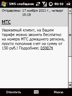 Вот 3 скрина для примера. До сих пор думаю, кто такой "Этот абонент" (см. время прихода СМС), на кой мне их 30 минут в подарок, когда точно такие же есть каждый день в тарифе (время прихода - суббота, 9 утра... уроды!) и на кой постоянные напоминания, что я могу пополнить счёт и иметь эти 30 минут, если в них нету даты, когда закончатся или закончились очередные 30 дней.
