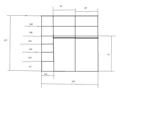1) Так как планирую, что двери будут упираться не в стену, а в ЛДСП, то крайние стойки (1) и (5) будут иметь глубину (или по другому- ширину листа) 620мм, ну и высоту соответственно 2640мм.