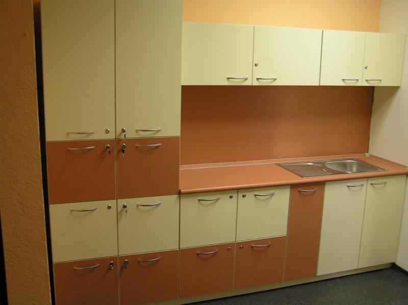 По поводу фасадов, облицованных пластиком. Мы на практике делали лишь однажды пластиковые фасады и фартук, не было подходящий расцветки ЛДСП, которую выбрал заказчик. МДФ не покупали, клеили на фанеру 15мм, просто она была под рукой. Получилось неплохо, но не дёшево. Столешницу делал «Город мастеров», так тогда ещё он назывался.