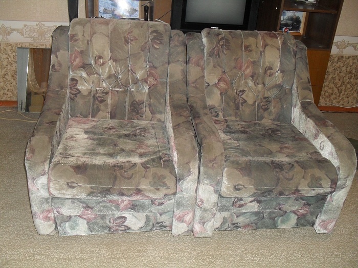 2. Диван небольшой (длинна 160 где-то), раскладываются боковинки так что можно взрослому леч, стоял на кухне 1000р.