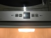Верхняя дверца - гнутое матовое стекло с рисунком, внутри - полки из стекла.