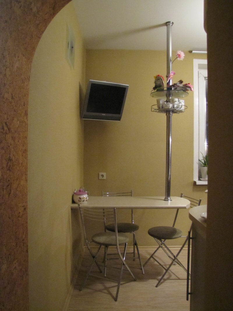 ...чудовищная вытяжка на первом фото - уж вовсе анахронизм, как ни крути, но любой человек, ростом выше 170ти, разобьет голову при попытке заглянуть в кастрюлю...В том то и дело, что в семье у заказчика все имеют рост 1,50 и не захотели ставить вытяжку по стандарту!