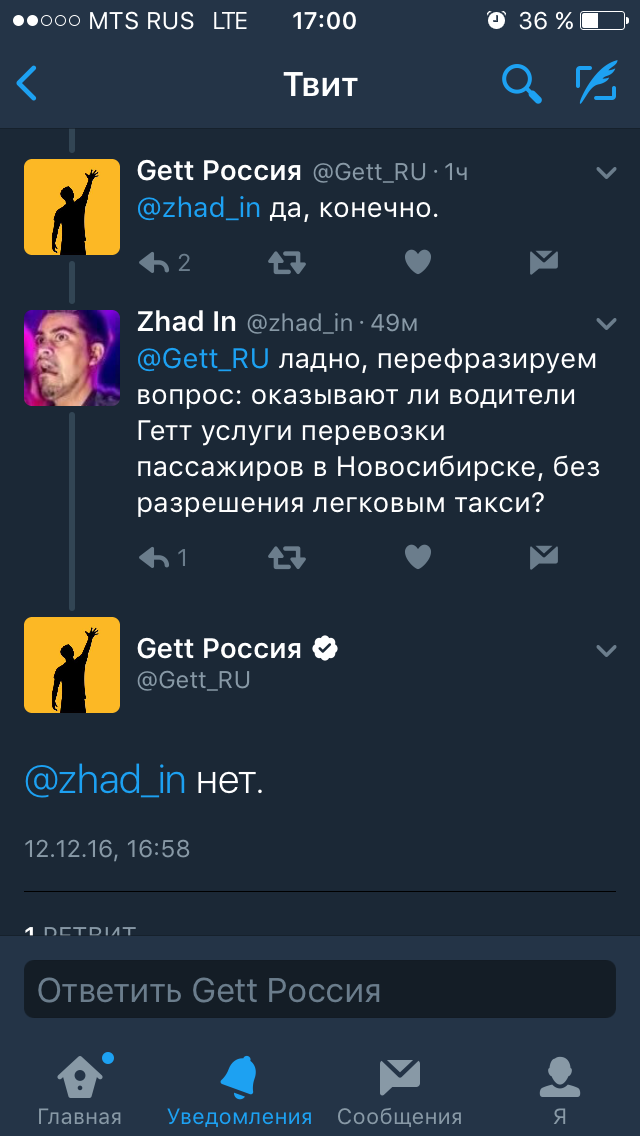 Ответ на сообщение Gett-такси в Новосибирске (часть 6) пользователя Nikola5012