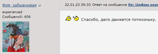 Спасибо, дело движется потихоньку.Ответ на сообщение Re: Цифры красивые. 2022-? (часть 8) пользователя Фря_забывчивая