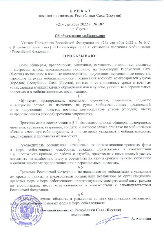 Военный комиссар Татарстана Сергей Погодин запретил ВСЕМ военнообязанным, находящимся в запасе, покидать свое место жительство — город или район.каким нормативно-правовым документом он это оформил?