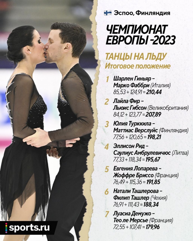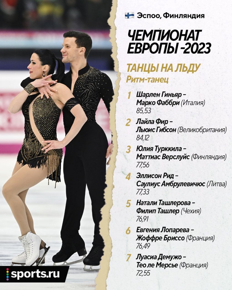 Итальянцы Шарлен Гиньяр и Марко Фаббри выиграли ритм-танец на чемпионате Европы-2023