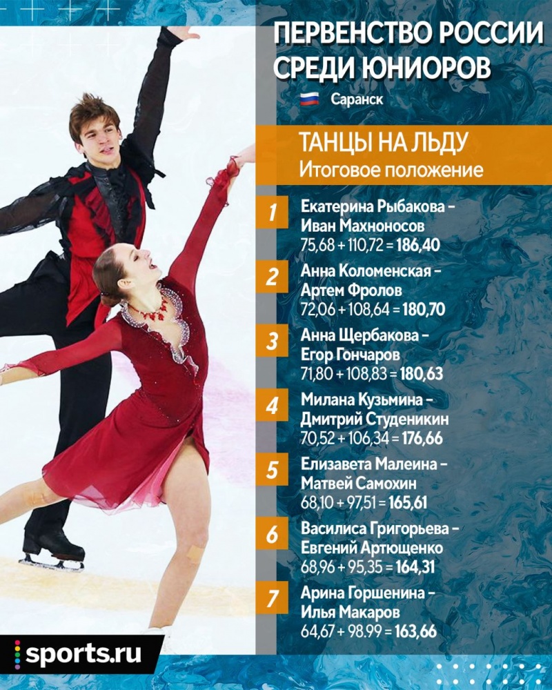 Анастасия Чернышова и Владислав Вильчик выиграли с оценкой в 69.06 балла. На втором месте с результатом 66.14 балла идут Варвара Медведева и Павел Астахов. Третье промежуточное место занимают -Влада Селиванова и Виктор Потапов — 63.09.