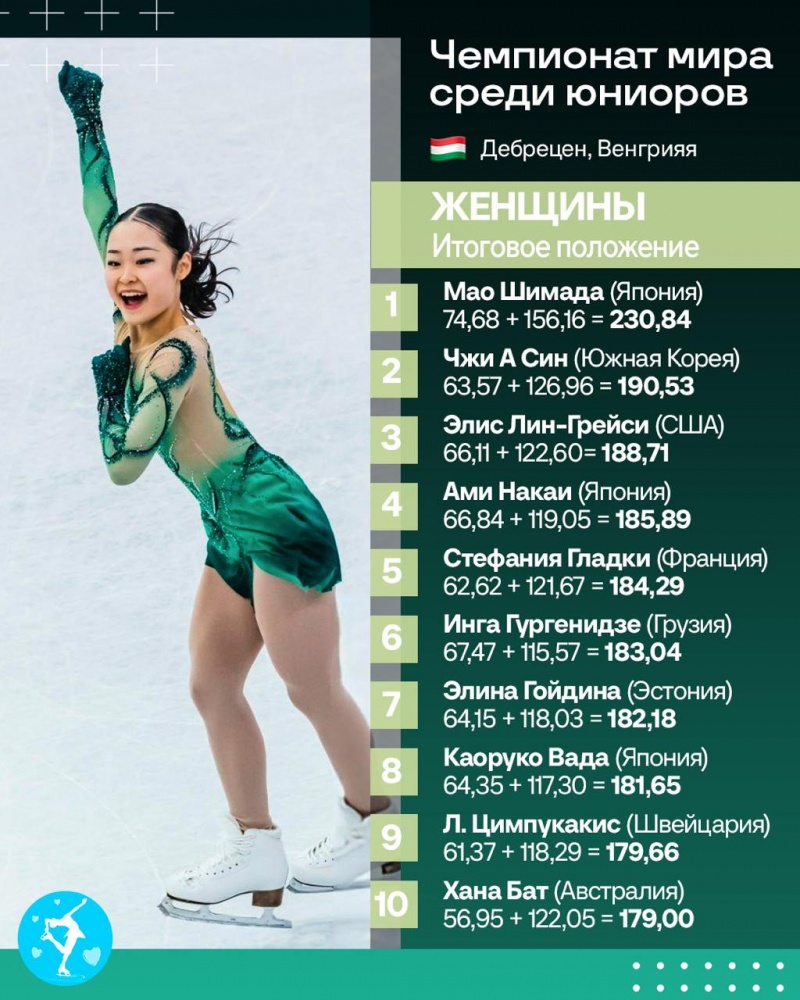 Мао Шимада – трехкратная чемпионка мира среди юниоров. Японка победила с преимуществом в 40 баллов, Чжи А Син – 2-я, Лин-Грейси – 3-я