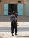 Полицейский (или военный, фиг разберешь их расцветки) с автоматом наперевес смотрел телек и без проблем разрешил мне прогуляться по цитадели, и еще напоил холодной водой… из консервной банки.