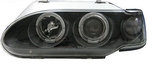 Фара передняя (моноблок) для ВАЗ2114-2115 с эффектом "ангельский глаз", ближний свет - линза. Подложка - черная матовая.