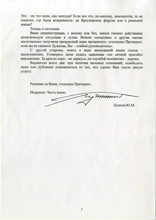 Ответ на сообщение Re: Юрий Лужков — Президенту Российской Федерации Дмитрию Медведеву пользователя Shimbun