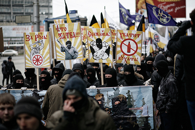 лица то зачем позаматывали, стыдно быть русским?Это первое что приходит вам на ум? Где логика? Кому стыдно быть русским он на русский марш никогда не пойдёт.