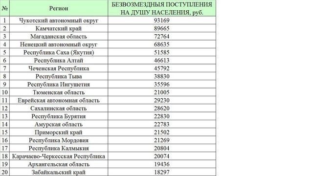 Откуда табличка то? Как у нас "рисуют" статистику надеюсь пояснять не надо. Большие вроде , а в сказки верите. Может кадыра бояться и деньги доходят до населения. а про магадан думаю нет.Это не статистика, а цифры из отчетности об исполнении бюджетов субъектов РФ и местных бюджетов. в чем разница , пояснять надеюсь не надо, большие вроде?