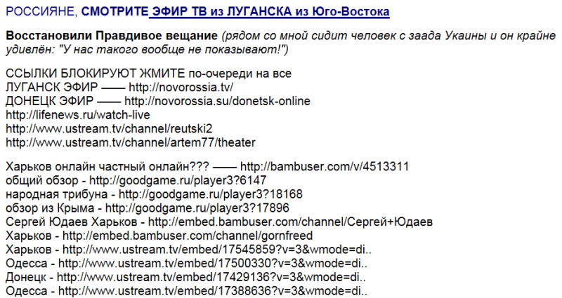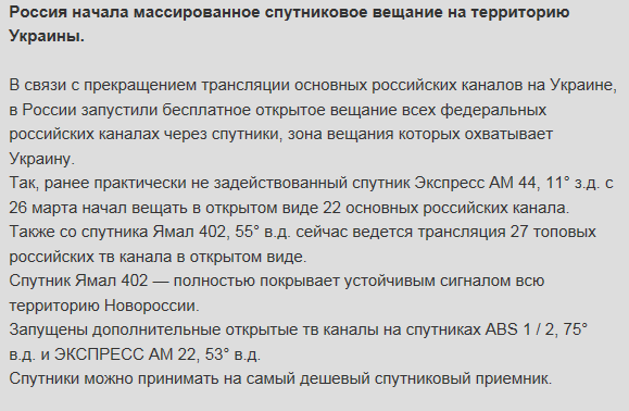 (...) наблюдая со спутника за происходящим(...)а заодно и жителям Украины - российские ТВ-каналы, бесплатно и открыто, см. скрин-