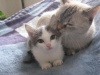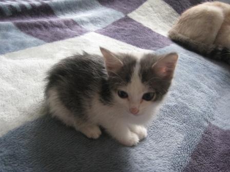 Возле подъезда строящегося дома по ул Высоцкого 33 сидел отделочник, на руках у него этот котик (возрастом1 1,5 месяца) - дяденька предлагал всем котенка, я, с утра, отказалась от подарка, но, возвращаясь вечером вижу - котейко сидит у подъезда один, мерзнет, сжалилась, взяла домой. Кошак очень худой, одни кости, сначала ничего не ел и не пил, пришлось кормить насильно. на сл день он уже освоился, ходит важно так сам в кошачий туалетик и любит сидеть на ноутбуке, спокойный, никого и ничего не боится, но и не играет почему-то, наверное, от потрясения... уже сосет мою кошку - девственницу :), у той аж опухли соски))))