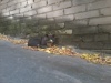 На улице Выставочной уже 2 дня (по рассказам) живет молодой серый пушистый кот. В основном сидит на деревьях - очень пугливый. Видно, что домашний - ласковый и толстый :-)
