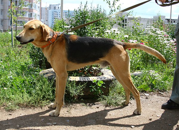 Сегодня, около 12 часов дня в районе Речного вокзала убежал за течной сукой кобель русской гончей. Возраст 2 года. В ухе клеймо.