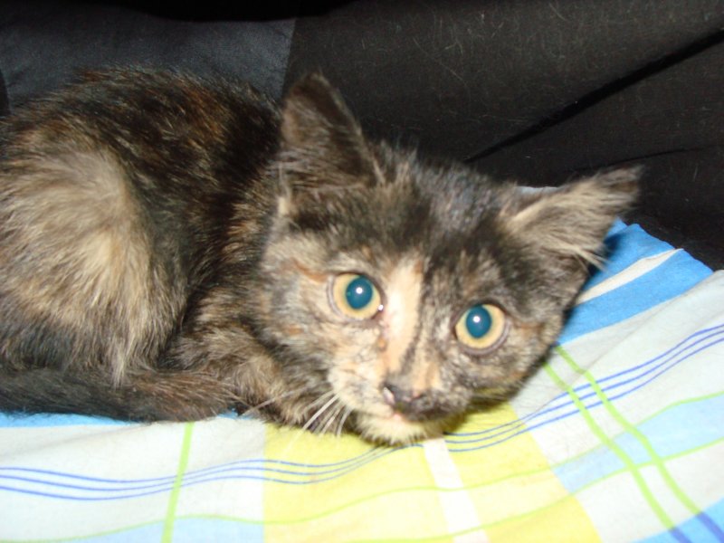 ,притащила к себе,отогрела,накормила,теперь хотели бы найти дом.Киса явно не домашняя,худая и шугливая,при попытке погладить её шипит,но потом даётся,ест жадно,видно давно не ела толком.Себе не оставлю муж против,мы своего потеряшку ждём,пока не хотим нового заводить :-( Это кошка,на вид месяц,может чуть больше,вроде здоровая,от блох обработали,сегодня глистогонное дам.Плохо то,что в дом её не пускаем,сидит в домике в тамбуре,там тепло,есть миска с едой,но она без общения,я выхожу к ней конечно,но это не то....Может кому приглянеться