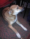 Прибилась, живёт в под"езде красивая ярко-рыжая молодая (10 мес.- 1 год) соба. Уши висят, грудка, лапки, под хвостом- белое. На хвосте- чёрный налёт. Очень ласковая, кошек облизывает. Когти аккуратно подстрижены, чистая, в меру упитанная. Лапы высокие, ростом по колено. Явно видно, что собака - квартирная, пытается зайти в любую квартиру. Постараемся сделать фото (если не убежит). Говорят, была в кожаном ошейнике,сейчас уже кто-то снял.