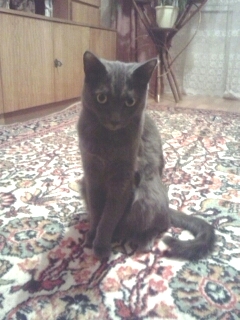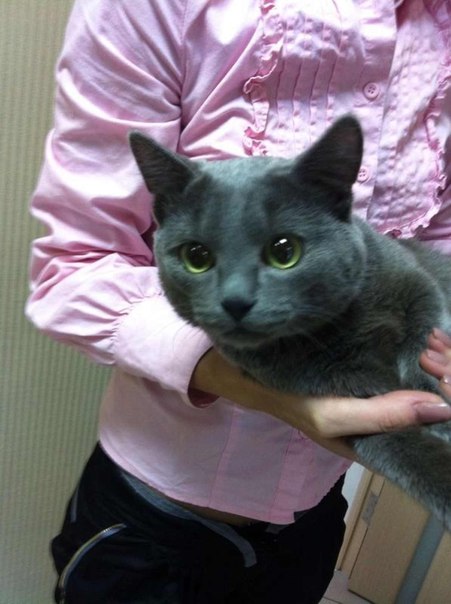 Окрас дымчатый, короткошерстный. Похож немного на породу русская голубая. Пугливый, мог забиться в подвал.