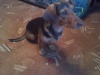 На вид около года, девочка, похожа на таксу, только ноги более высокие, черно-рыжая, умненькая, чистая, без клейма, была в ошейнике.