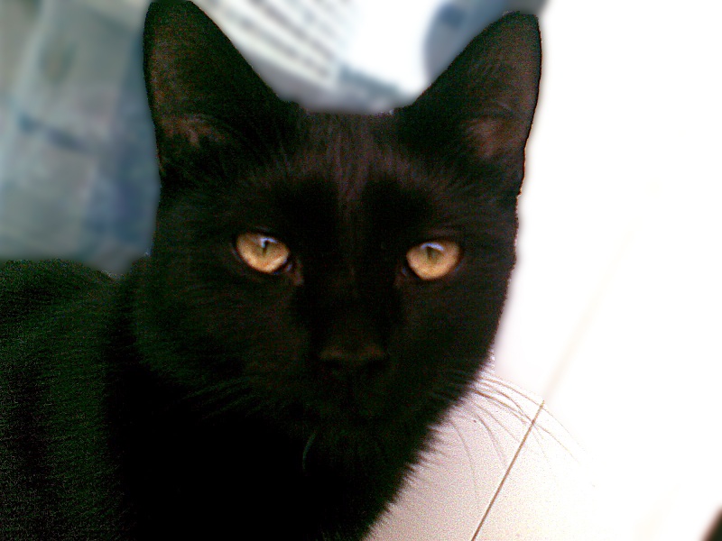 ), возраст, как сказали веты, около 11 м-в. К людям идет спокойно, вообще никого не боится, поэтому я его и забрала, такой долго не протянет на улице! Белых волосков особо не наблюдаю, к сожалению...