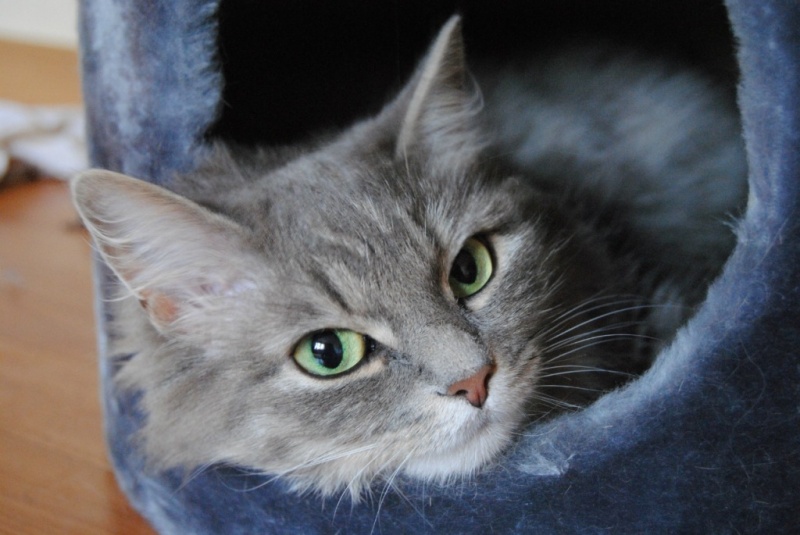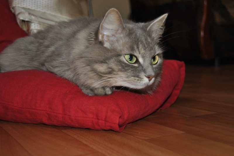 Кличка Клепа. Дымчато -серая, глаза зеленые. ПДШ, 9 лет.