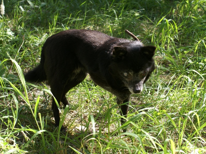 На улице Бориса Богаткова на проезжей части подобрана маленькая черная собачка с тонкими ножками с серебристым, само тело немного пушистое. На вид старая.